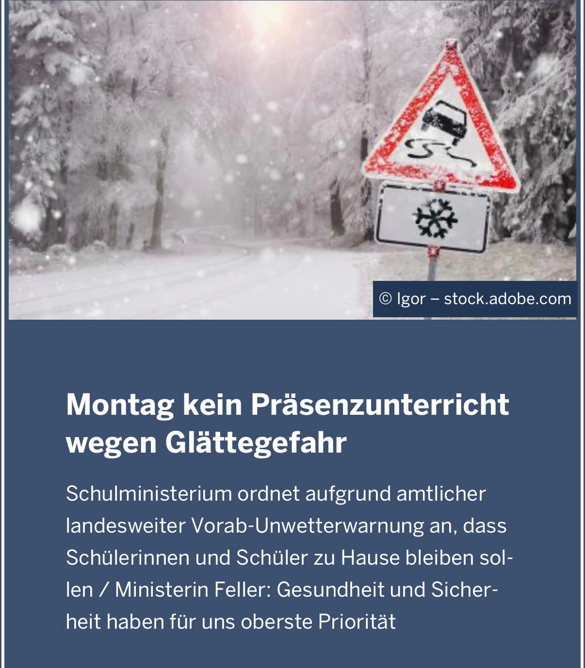 Am Montag, dem 12.01.2026, findet wegen Glättegefahr kein Präsenzunterricht statt!